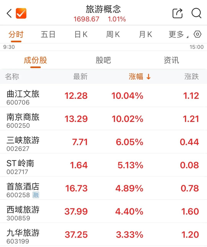 早盘,大消费板块持续活跃,食品饮料、乳业、餐饮旅游等多个方向涨幅居前。截至午间收盘,润普食品涨超10%,庄园牧场、曲江文旅、南京商旅涨停。
