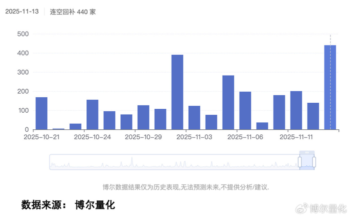 另外也要注意,今天反映短线资金行为的「连空回补」数据创下新高,这说明今天的反击有很大的短期行为嫌疑。