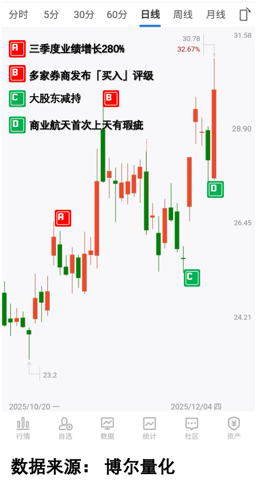 经历了连续多日的调整后,市场中对行情的质疑声多了起来,其实这也是典型的看涨说涨,看跌说跌,如果说投资当中有什么拦路虎的话,毋庸置疑,这一条是最坑人的,就像最近非常火爆的商业航天概念,这个系列的题材股并不难找,毕竟当去年工作报告首次提及这一题材时,市场就把相关的题材股扒了一个底朝天,但即便如此,这样的明牌股,依旧有大批人做不好,比如下面这只股票就很典型。