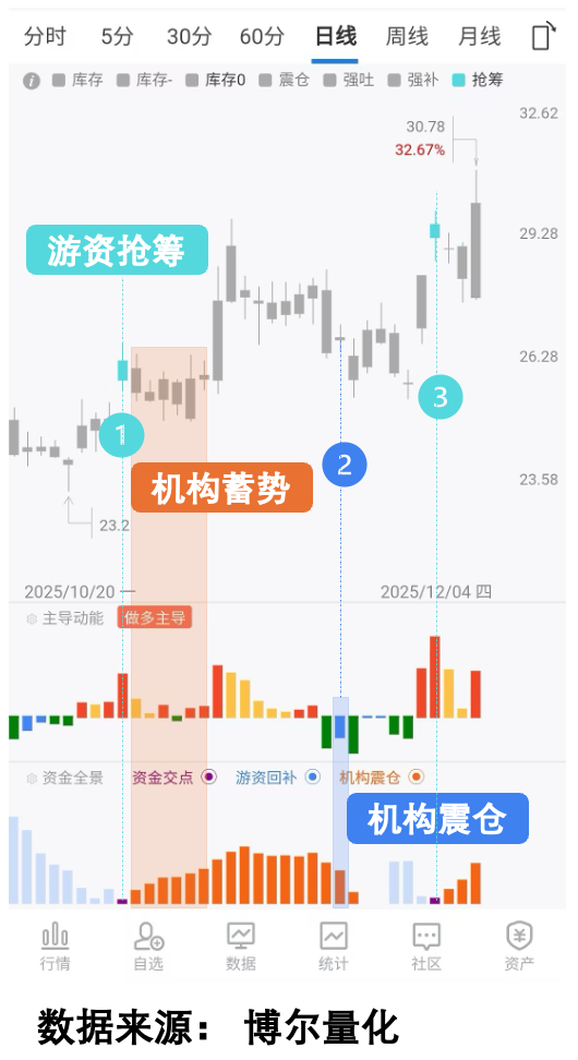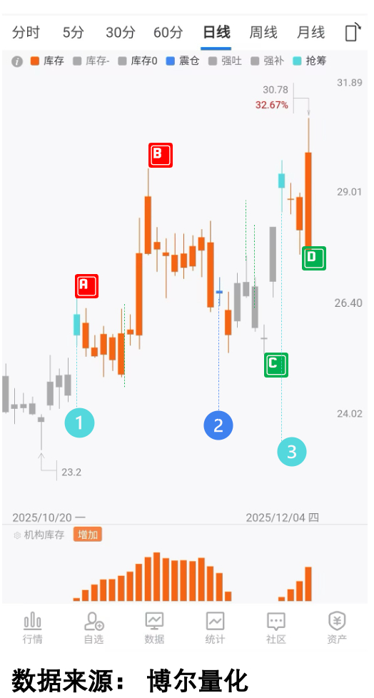 这时候,博尔的「机构库存」数据(图下方橙色柱状)就是「照妖镜」,直接帮你看穿机构的底牌:
