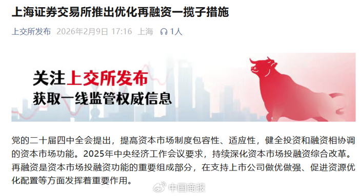 消息面上,2月9日,沪深北交易所宣布优化再融资一揽子措施。在进一步支持优质上市公司创新发展方面,沪深北交易所明确,对经营治理与信息披露规范,具有代表性与市场认可度的优质上市公司,优化再融资审核,进一步提高再融资效率。同时,为更好适应科创企业再融资需求,沪深交易所已修订上市公司“轻资产、高研发投入”规则,明确主板企业认定标准。沪深北交易所存在破发情形的上市公司,可以通过定增、发行可转债等方式合理融资,募集资金需投向主营业务。此外,沪深北交易所还明确提升再融资灵活性、便利度,加强再融资全过程监管。