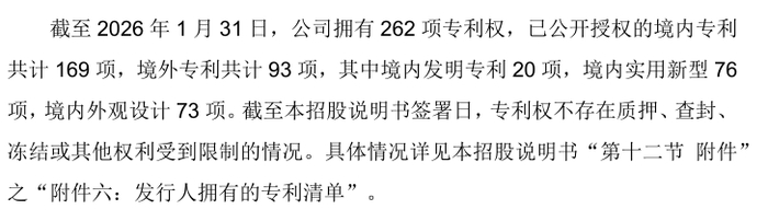 截至2026年1月31日,宇树科技拥有262项专利权,其中境内发明专利20项。更重要的是,这些专利不是堆数量,而是围绕机器人本体的核心结构、驱动、控制与感知布局。