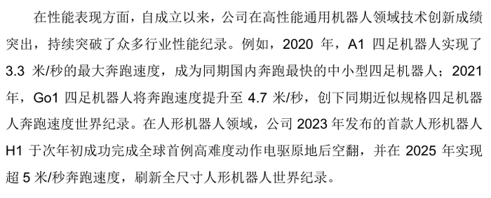应用场景层面,招股书将四足机器人的应用划分为行业级与消费级两个方向。短期来看,电力巡检、消防救援等行业级场景商业化落地相对较快;中长期来看,庞大消费群体支撑下的消费级应用将是未来市场增长的核心驱动力。人形机器人则主要应用于科学研究、应用开发、教育教学、文化表演、智能服务等领域,工业场景的大规模应用尚在探索阶段。
