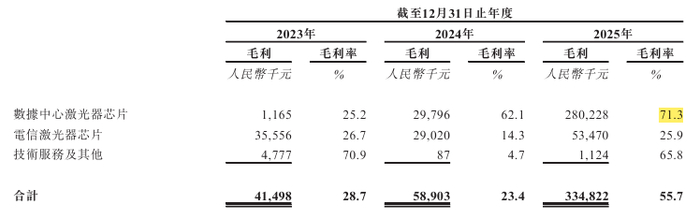 来源:源杰科技招股书2025年综合毛利率达到55.7%,而数据中心产品毛利率更是高达71.3%,成为利润增长的绝对引擎。