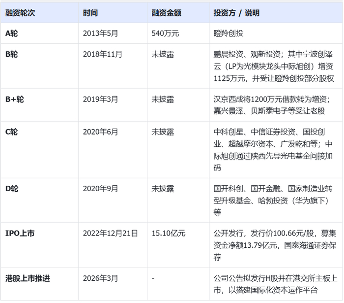 2020年是源杰科技融资史上的关键节点。6月,中科创星领投,西咸金控管理的西咸引导基金通过子基金陕西先导光电基金跟投,工大科创、国投创业、广发乾和等机构共同完成第九次增资。9月,华为旗下的哈勃投资与国开基金、国开科创联合出手——这一举动在当时被视为对源杰科技技术实力的“顶级背书”。
