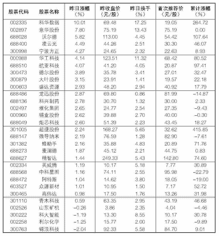 大众30指数成份股中,10日涨幅前五位的分别是科华数据、沃尔德、凌云光、宁波方正、华工科技,涨幅分别为10.01%、5.82%、4.49%、4.27%、4.14%;跌幅榜上,锦浪科技、利尔化学、农业银行、科大智能等跌幅居前。