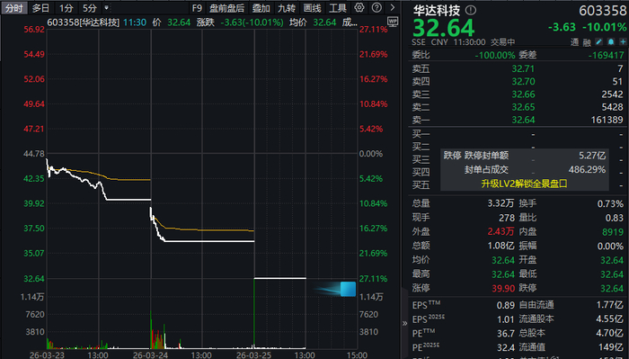 在连续两天的上攻后,沪指早盘收复3900点,逾4500只个股上涨,仅有3只个股跌停,其中仅华达科技(603358)为非ST个股,且该股已连续三日跌停。截至午间收盘,华达科技卖一位置仍有超16万手卖单等待出逃。