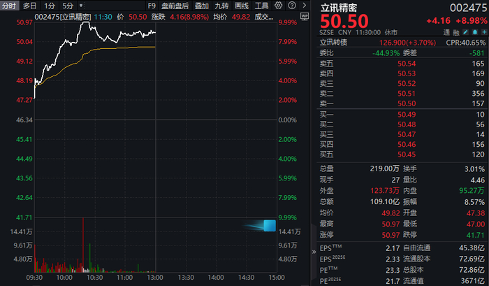 今日早盘,半导体、电子元件板块持续拉升。千亿市值龙头企业立讯精密盘中一度涨停,该股半日成交金额已超100亿元,位居市场前列;佰维存储、源杰科技、亚翔集成等多股股价盘中创下历史新高。
