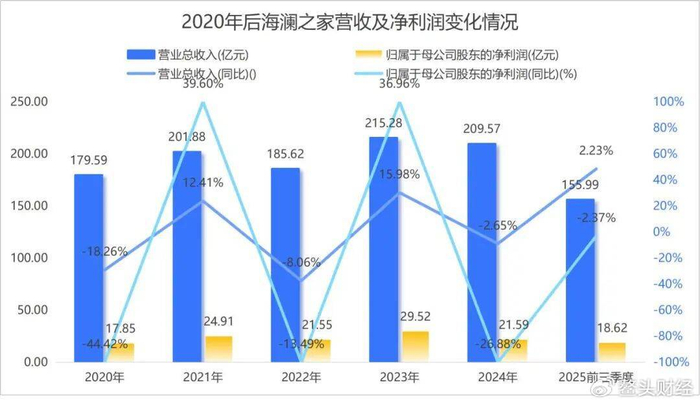 这种品牌与产品上的滞后,直接反映在核心业务的疲软上。2025年前三季度,贡献公司超七成营收的主品牌“海澜之家”系列,营收为108.49亿元,同比下滑了3.99%。这是该品牌自2024年下半年以来,连续多个财报期出现下滑。