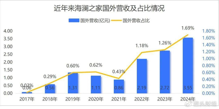 同时,海澜之家也在进行着国际化尝试。虽然也有不小的进步,但占比依然不高。到2024年国外营收已经达到3.55亿元,但占比仅为1.69%。截至2025年6月30日,海澜之家的海外门店数量为111家,在其全部7000多家门店中,依然是微不足道的“小众”。