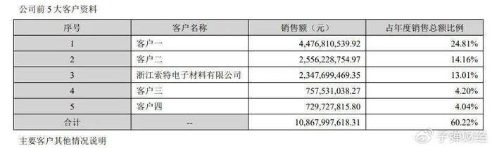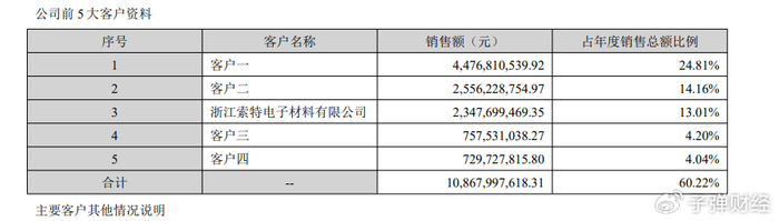 「子弹财经」注意到,2025年,帝科股份营业收入180.46亿元,同比增长17.56%,创上市以来新高。其中,60%的收入靠前五大客户贡献。