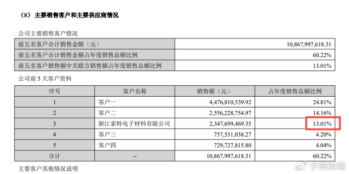 值得一提的是,公司第三大客户是其2025年刚完成收购、纳入合并报表的控股子公司浙江索特。