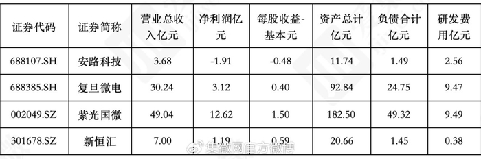 中国半导体上市公司数据方面,《报告》以安路科技、复旦微电、紫光国微、新恒汇这4家上市企业为样本,构建了全方位对标体系。