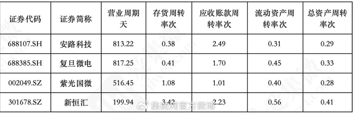 从整体资产周转效率看,四家企业呈现 “中小企更优、头部分化” 格局,流动资产周转率与总资产周转率的差异,深刻反映企业资产利用效率与业务模式的关联性。新恒汇以 0.56 次流动资产周转率、0.41 次总资产周转率双高领跑,两项指标均显著高于其他企业,核心因其一贯聚焦智能安全芯片封装测试业务 —— 该业务属于轻资产模式,流动资产(如存货、应收账款)占比高且周转速度快,无需大规模固定资产投入,资产整体运营效率自然领先,凸显中小半导体企业在细分轻资产赛道的运营优势。