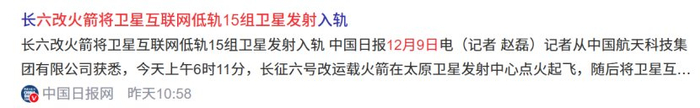 值得之一的是,仅仅3天前的12月6日,海南商业航天发射场,长征八号甲运载火箭将中国星网的卫星互联网低轨14组卫星送入轨道。