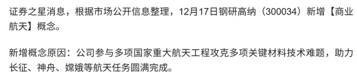 登月关联:公司参与多项国家重大航天工程攻克多项关键材料技术难题,助力长征、神舟、嫦娥等航天任务圆满完成。