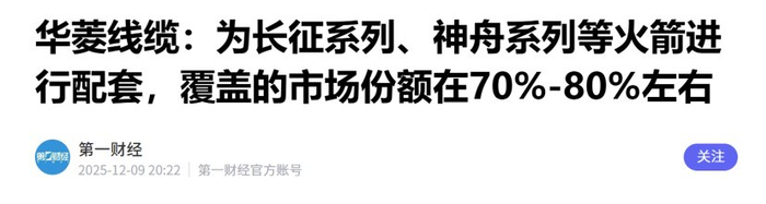 核心优势:公司在火箭和卫星线缆市场已实现深度卡位,火箭相关产品市场份额达到70%-80%,部分卫星配套产品为独家供应。