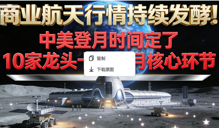 登月关联:公司通过控股子公司微研中佳,深度参与中国探月工程,成为航天五院指定的精密零部件优选供应商。公司承接了神州天舟、载人登月和嫦娥登月等国家重大航天项目中核心精密零件的研发和生产,为探月任务提供了关键的技术支撑。有望在登月中继续提供核心的精密零部件。
