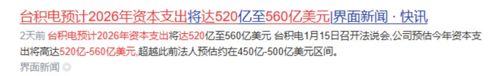 台积电1月15日披露2026年资本支出,预计达520-560亿美元,大幅超出市场预期,其中设备投入资金超预期增加,未来两年全球扩产空间进一步提升。