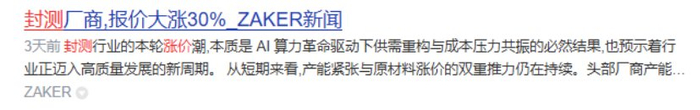 另外,受DRAM与NAND Flash大厂冲刺出货的刺激,力成、华东、南茂等存储封测厂订单涌进,产能利用率近乎满载,近期陆续调升封测价格,调幅上看三成,且“后续不排除启动第二波涨价”。