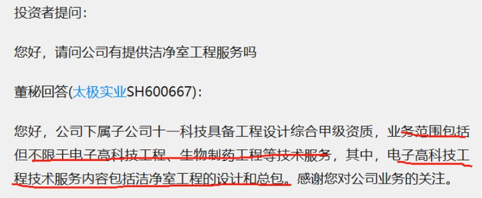 半导体洁净室:公司下属子公司十一科技电子高科技工程技术服务内容包括洁净室工程的设计和总包。在集成电路工程、和洁净室工程(半导体、光伏、生物医药等领域)的设计建设环节,公司市占率高达60%-70%,技术壁垒和品牌效应显著。
