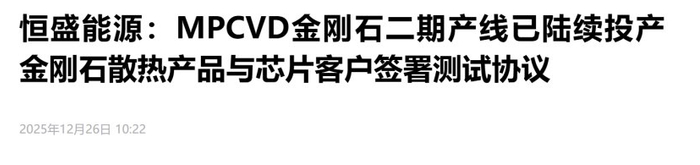 2026年1月26日的券商纪要也明确表示,AI时代芯片散热+超硬材料钻孔两大新增市场,市场空间300-500亿元。