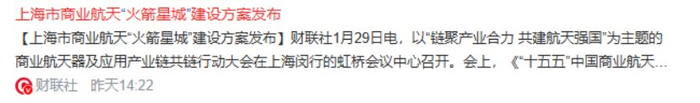 1月29日,上海市商业航天“火箭星城”建设方案发布