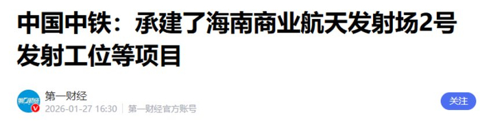 第三,在商业航天领域,公司承建的海南商业航天发射场 2 号发射工位,已正式投入高频发射。