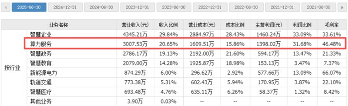 算力业务:公司于2024年10月18日下午收到中国移动广东有限公司深圳分公司关于“某客户算力网络集群服务项目算力服务”项目和“某客户算力网络集群服务项目算力维保服务”项目的甄选结果通知。2025年上半年算力营收占比达20.65%。