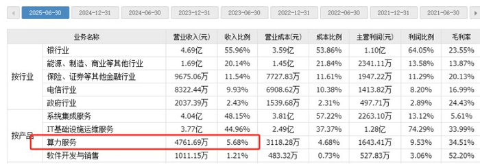 算力业务:公司从事算力服务业务,主要是根据客户对算力的特定需求,为客户智算中心提供从算力基础设施建设、系统集成与部署、安全管理措施、项目管理与进度管控、后期运维与支持等全方位技术服务。2025上半年算力营收达4700万,占比5.68%,随着需求激增,公司算力业务又饿进一步上升。