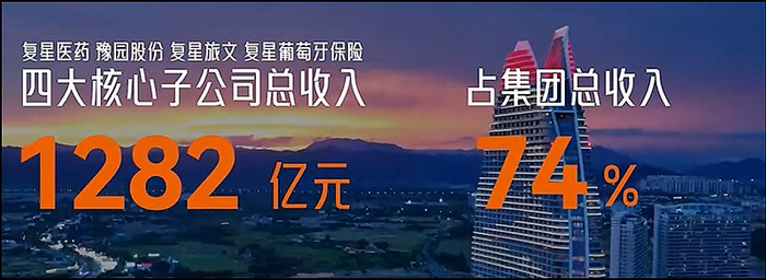 虽然2025年总营收1734.3亿元略有波动,但如果我们把目光聚焦到四大核心子公司,复星医药、豫园股份、复星葡萄牙保险和复星旅文上,情况就不一样了。四大核心子公司总收入达1282亿元,占集团总收入的比重同比上升3个百分点,达到74%。