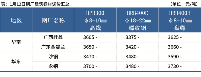◎1月12日,内蒙古个别焦企对焦炭价格提涨50元/吨。