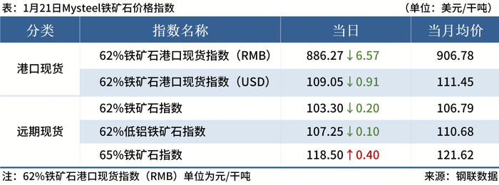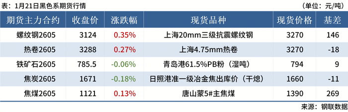 ◎ 1月21日,全国主港铁矿石成交81.20万吨,环比减30.3%;237家主流贸易商建筑钢材成交7.63万吨,环比减2.2%。
