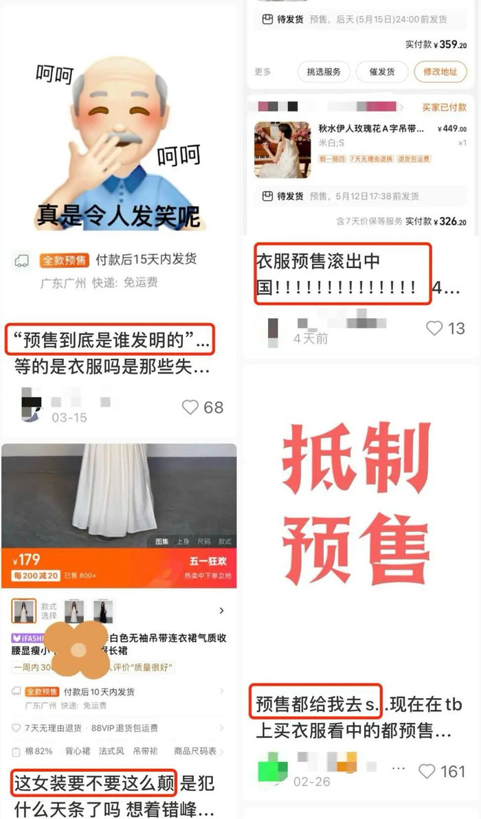 除此之外,为了库存积压,不少网店都选择了“柔性供应链”,用大白话来说就是预售。经常在网上买衣服的女生,估计都十分痛恨预售这种东西。