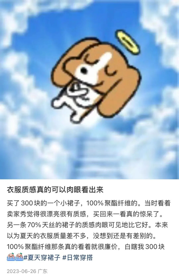图源:小红书同时,女装的价格也是直线上升,一些网红店的衣服堪比商场女装的价格,并且质量与价格也不对等,有网友表示,自己花300元买了一条100%聚酯纤维的小裙子。