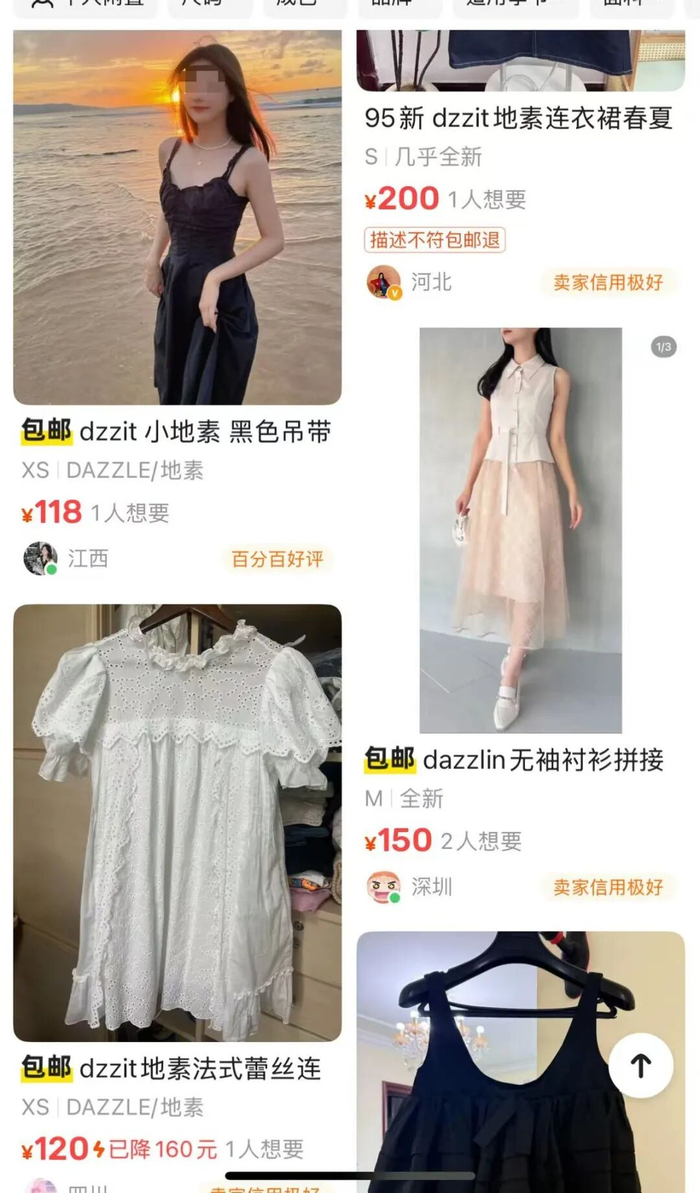 图源:闲鱼在闲鱼平台上搜索地素,能看见有不少消费者把自己从地素买的蕾丝连衣裙挂了上去。