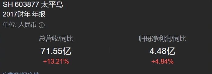 图源:腾讯微证券2017年的时候,太平鸟不仅成功登陆A股,还向市场交出了一份漂亮的成绩单,总营收达到了71.55亿元,归母净利润为4.48亿元。