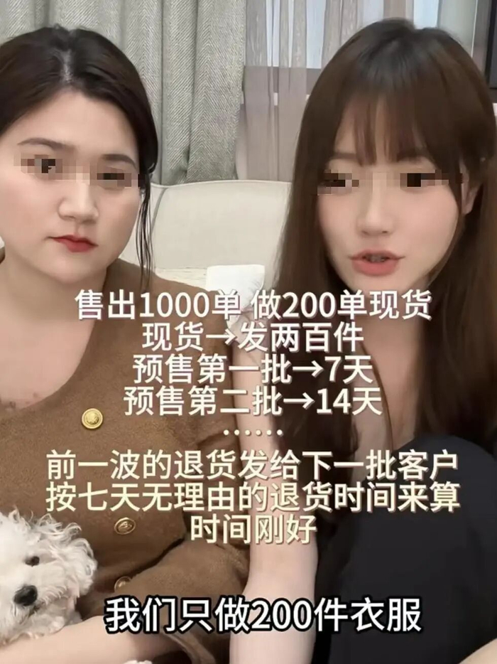 图源:网络有业内人士爆料,有一些网店只会生产少量的衣服并且采用先到先得的方式发货,而晚下单的消费者,收到的很有可能是第一批人退货。