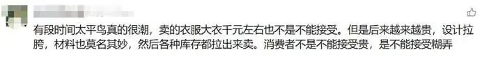 图源:网络在社交媒体上,有网友表示,太平鸟有一段时间很潮,但是之后就十分拉胯了,不仅拿库存出来卖,价格还越来越贵。