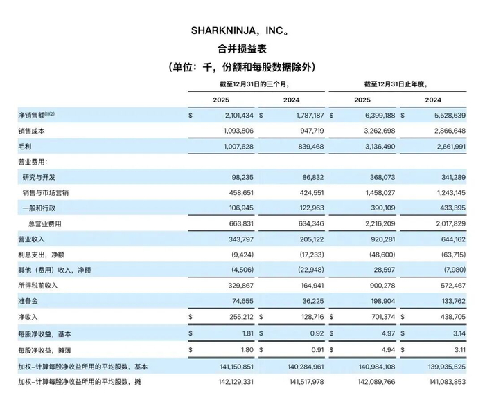 2026年2月11日,SharkNinja公布了截至2025年12月31日的第四季度及全年财务业绩,从数据来看,公司表现依旧强劲。