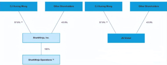 九阳联合鼎晖财团以16亿美元拿下SharkNinja母公司70%股权,然后通过股权置换,将九阳59%股权与SharkNinja 100%股权打包,组建了JS环球生活在港交所上市。