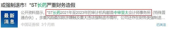 要知道在过去几年来,“ST长药”的审计机构是知名会计事务所中审亚太,该事务所为企业曾出具过无保留意见和非标审计意见。