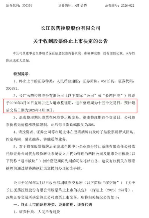 说到底,长江医药从贴上“ST”的帽子,到进入退市倒计时,在这场长达3年的财务造假骗局中,普通股民和投资者更像是资本手里的“棋子”,稍有不慎就可能血本无归。