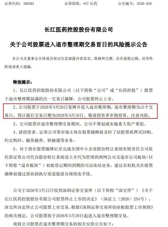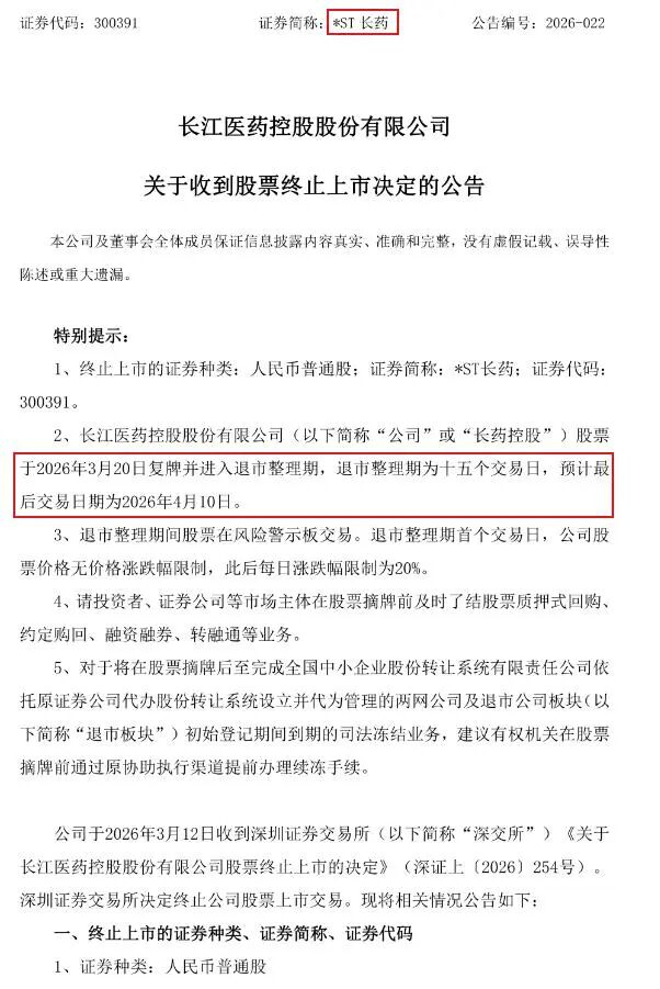 如今连续三年造假的“ST长药”已经进入退市倒计时,距离真正的退市也不远了。