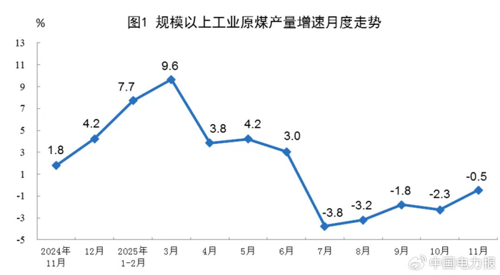 原煤生产保持稳定。11月份,规上工业原煤产量4.3亿吨,同比下降0.5%;日均产量1423万吨。