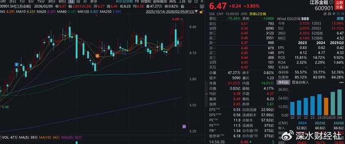 而在这波金融行情中,A股唯一金融租赁上市公司江苏金租(600901.SH)格外吸睛,收盘报6.47元,涨幅3.85%,股价创上市以来历史新高。