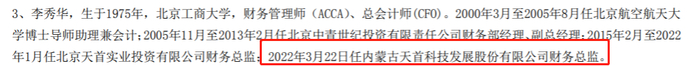 值得注意的是,查阅天首发展2021年年度报告,上面显示李秀华是2022年3月上任天首发展财务总监,此前都在下属子公司。