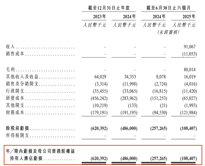 而由于尚未商业化,加上持续的研发投入,先为达也一直处于持续亏损状态。2023年、2024年及2025年上半年(以下称“报告期”),公司的净亏损分别约为6.2亿元、4.86亿元和1.08亿元。