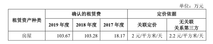 值得一提的是,在先为达成立之初,因办公及研发需求,还曾向凯因科技租赁相关场地及设备用于研发及办公。2017年-2019年,各期产生的房屋租赁费分别为18.17万元、103.28万元、103.67万元,各期产生的设备租赁费分别为28.46万元、110.13万元、85.17万元。