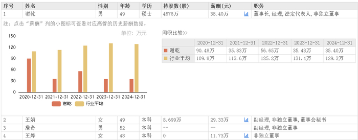 据东方财富网数据,卓易信息董事长谢乾2024年所获薪酬为35.40万元,相较上年薪酬35.43万元基本持平。